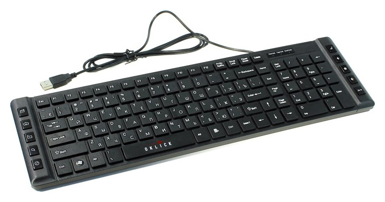 Классическая полноразмерная клавиатура Oklick 530S в ультратонком формате замечательно проявит себя не только в печатной работе, но и при прохождении игр. Для геймеров специально предусмотрено несколько клавиш быстродействия. С их же помощью Вы с легкостью доберетесь до требуемого мультимедийного ресурса, нажав всего лишь 1 кнопку. Несмотря на свою легкость, корпус продукта очень прочный, что обеспечивает дополнительную надежность в процессе эксплуатации. Подключать к системному блоку подобное устройство нужно посредством USB-интерфейса, который отвечает также за подачу электрического питания по шине и ограничивает радиус действия модели. Oklick 530S – универсальная, а главное, доступная клавиатура, которая отличается скоростными параметрами реагирования на каждый запрос, а также обладает удобной раскладкой с ярко пропечатанными буквами на поверхности клавиш.
