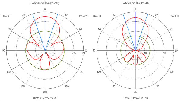 Диаграмма направленности в горизонтальной и вертикальной плосткостях.